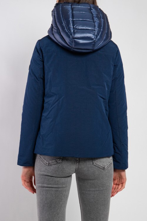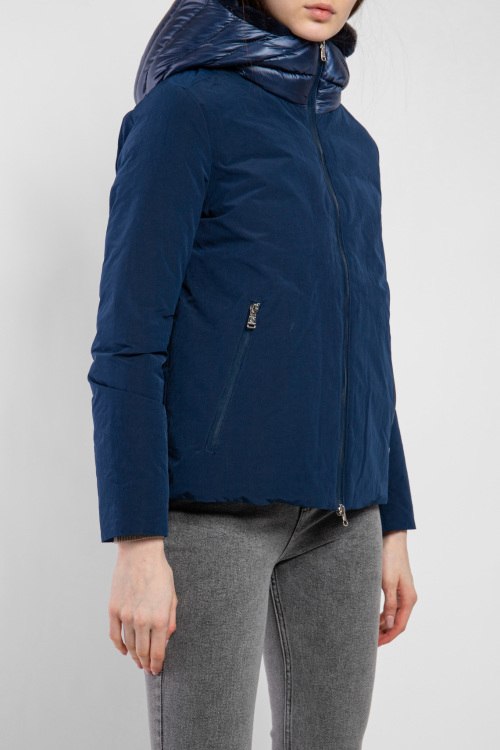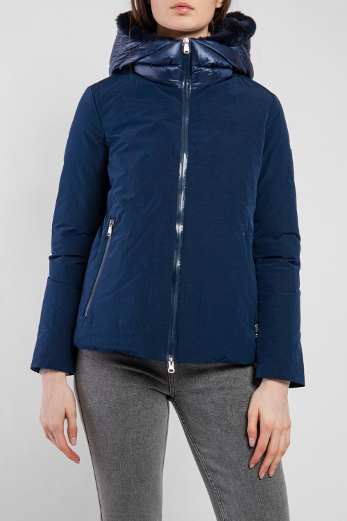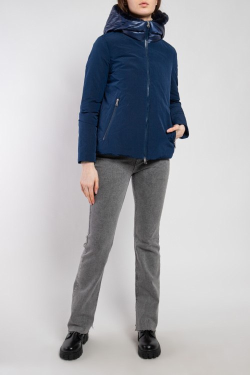 Женская синяя куртка из нейлона от Bosideng (Босиден). Высокий воротник-стойка, вшитый стеганный капюшон, боковые карманы на молнии, патч-лого, стеганая подкладка, модель утепленная миксом из пуха и пера. После специальной обработки изделия остаются «дышащими», непромокаемыми и эластичными. Они не деформируются после стирки, пух не «оплывает» и не вылезает из швов. И по весу они очень легкие. Измерения: длина куртки на размер S (62 см), длина рукава (62 см).
