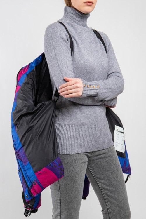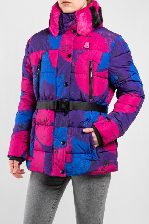 Детали: Женская синяя куртка из полиэстера от Invicta (Инвикта). Стеганый дизайн, высокий воротник-стойка с меховой отделкой, застежка на молнию и кнопки, четыре внешних кармана на молнии, трикотажная резинка на манжетах, брендированные бретели, патч-лого, модель дополнена черным поясом, на синтепоне