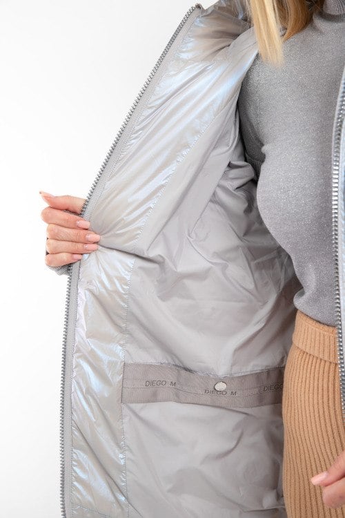 Детали: Женская перламутровая куртка из полиэстера от Diego M (Диего М). Стеганый дизайн, высокий воротник-стойка, вшитый капюшон с кулиской, скрытая кулиска для сборки по линии талии, прорезные карманы, модель утепленная миксом из пуха и пера. Измерения: длина изделия: 72 см, ширина по груди: 62 см, ширина по талии: 63 см, длина рукава по внутреннему шву: 62 см, ширина рукава: 23 см,