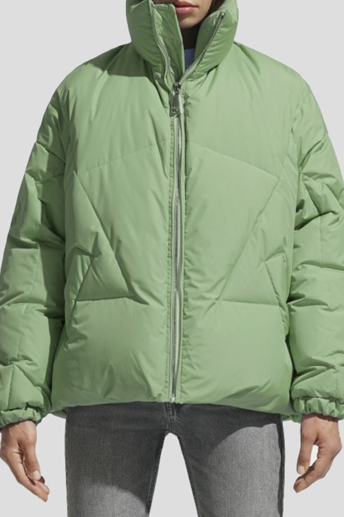 Детали: Женская бледно-зеленая куртка на пуху Moon от Khrisjoy (Крис Джой). Высокий воротник, боковые карманы, застежка-молния, классическая длина, манжеты на резинке, наполнитель из микса пуха и пера