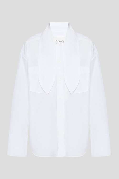 Детали: Женская белая хлопковая рубашка от Closed (Клоузед). Воротник-стойка на завязках, два кармана на груди, застежка на пуговицы. Длина рукава: длинный, для размера S - 57 см, обхват груди: для размера S - 114 см, обхват талии: для размера S - 114 см, длина изделия по среднему шву спинки от горловины: для размера S - 72 см