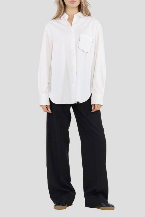 Детали: Женская белая хлопковая рубашка от Paul Smith (Пол Смит). Накладной карман на груди. отложной воротник, застежка на пуговицы, манжеты на пуговицах, классическая длина