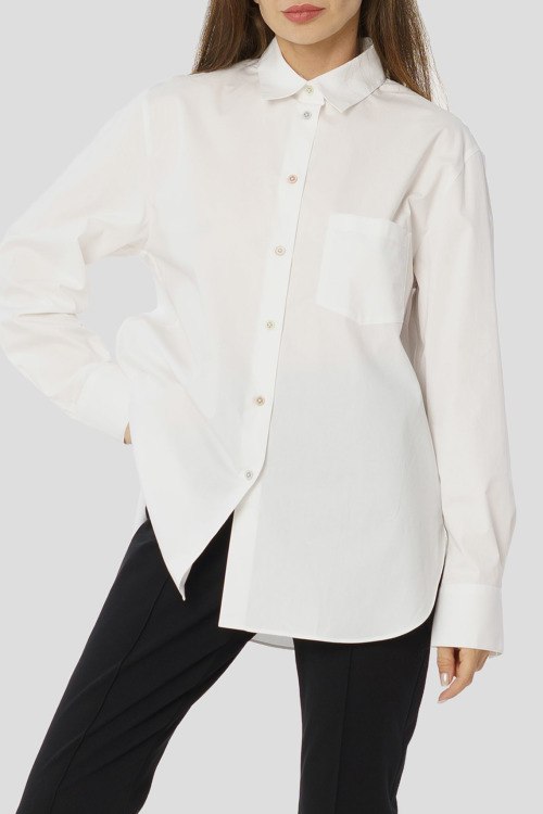 Детали: Женская белая хлопковая рубашка от Paul Smith (Пол Смит). Накладной карман на груди, отложной воротник, застежка на пуговицы, манжеты на пуговицах, удлиненная длина