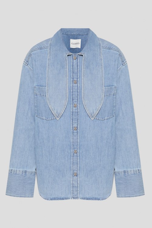 Детали: Женская голубая джинсовая рубашка от Closed (Клоузед). Отложной воротник , два кармана на груди, застежка на пуговицы, манжеты на пуговицах. Длина рукава: длинный, для размера S - 56 см, обхват груди: для размера S - 114 см, обхват талии: для размера S - 114 см, длина изделия по среднему шву спинки от горловины: для размера S - 73 см