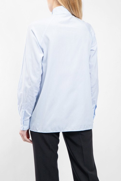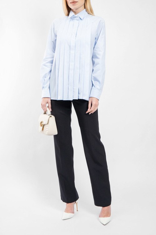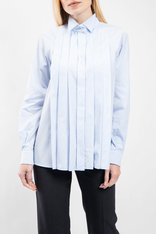 Женская голубая хлопковая рубашка Acanto от Max Mara Weekend (Макс Мара Викенд). Отложной воротник, плиссированные складки спереди, скрытая застежка на пуговицы, манжеты на пуговицах, классическая длина.