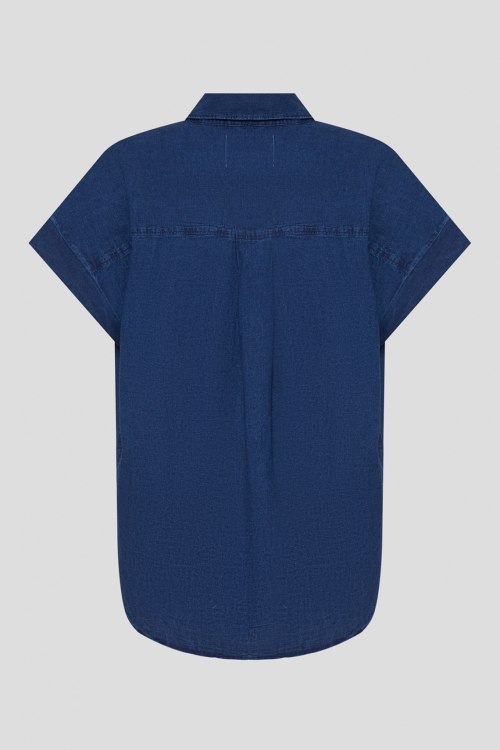 Детали: Женская темно-синяя рубашка из льна и хлопка от Closed (Клоузед). Отложной воротник, застежка на пуговицы, короткий рукав. Длина рукава: короткий, для размера S - 27 см, обхват груди: для размера S -112 см, обхват талии: для размера S - 106 см, длина изделия по среднему шву спинки от горловины: для размера S - 67 см