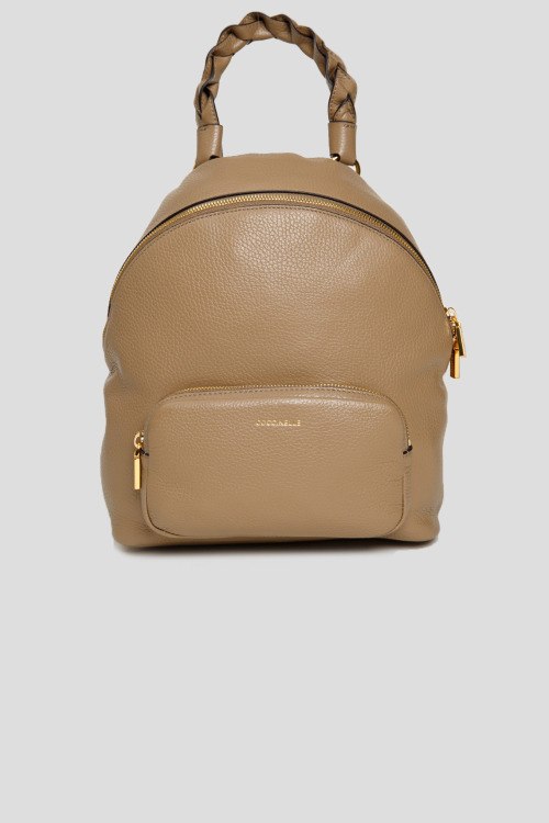 Женский кожаный рюкзак в цвете taupe Clementine от Coccinelle (Кочинелле). Значок с логотипом, золотистая фурнитура, внешний карман на молнии, застежка-молния, верхняя ручка, регулируемые плечевые ремни, одно основное отделение. Измерения:17|25х32х9,5 см