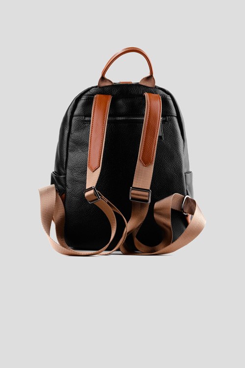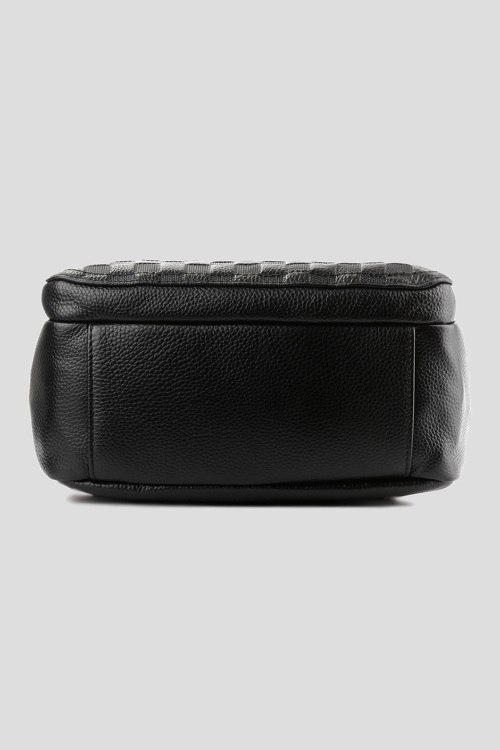 Детали: Женский черный кожаный рюкзак от Le Berdes (Ле Бердес). Дизайн с тиснением, верхняя ручка, серебристая фурнитура, снаружи одно отдельное отделение на магните и карман на молнии, подкладка из текстиля, внутри одно основное отделение, четыре кармана, регулируемые плечевые ремни. Размер: 32х26х13 см
