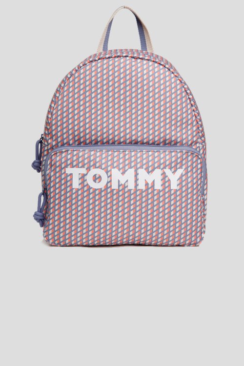 Женский голубой рюкзак от Tommy Hilfiger (Томми Хилфигер). Одно отделение, дополнительный внешний карман на молнии, ручка в руку, регулируемые плечевые ремни, дизайн в виде комбинации цветов, спереди принт с логотипом бренда