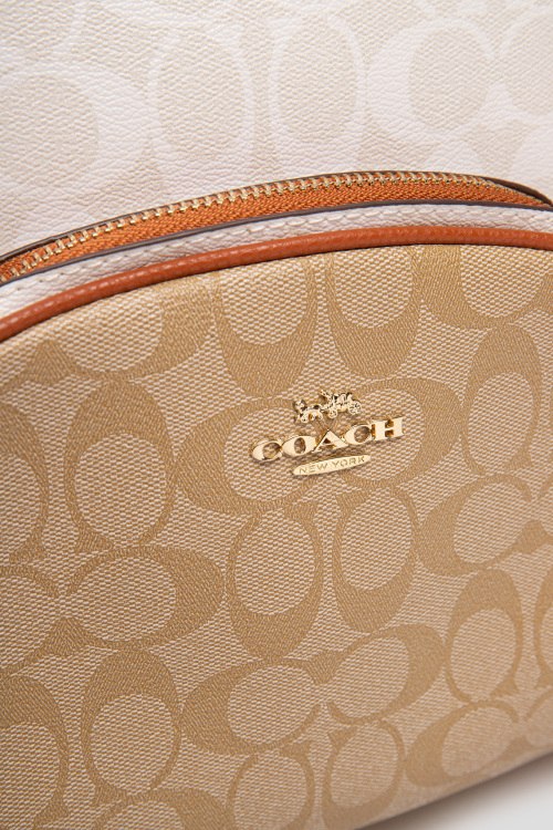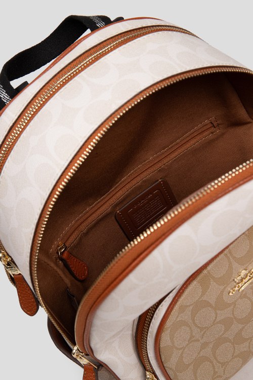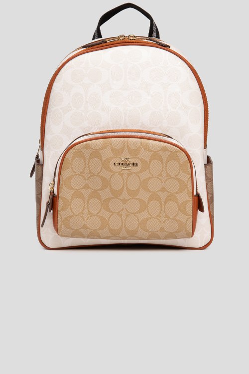Детали: Женский рюкзак из канвы и кожи молочного оттенка Court от Coach (Коуч). Монограмма бренда, накладной карман на молнии, два боковых кармана, верхняя ручка, регулируемые плечевые ремни, застежка-молния, одно отделение. Комплектация: коробка и пыльник. Размеры: 26 х 32 х 11 см