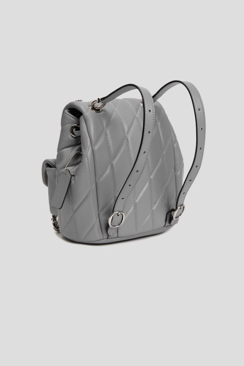 Детали: Женский серый рюкзак из натуральной кожи от Coach (Коуч). Стеганый дизайн, одно основное отделение, застежка на кулиску, клапан и кнопку, два накладных внешних кармана с клапанами, регулируемые плечевые ручки, серебристая фурнитура, металлический логотип, брендированная бирка. Размеры: 20 х 20 х 12 см
