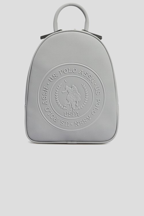 Женский светло-серый рюкзак из экокожи от U.S. Polo Assn (Ю. Эс. Поло). Одно отделение, застежка на молнию, внутренние карманы, регулируемые плечевые ремни, тиснение с логотипом бренда. Размер: 21х28х8 см