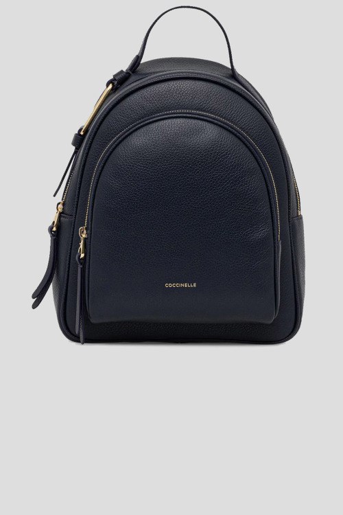 Детали: Женский темно-синий кожаный рюкзак Malory от Coccinelle (Кочинелле). Модель из зернистой кожи, логотип спереди, золотистая фурнитура, накладной карман на молнии, застежка-молния, одно отделение, круглая ручка, регулируемые плечевые ремни. Размеры: 23 x 30 x 9 см