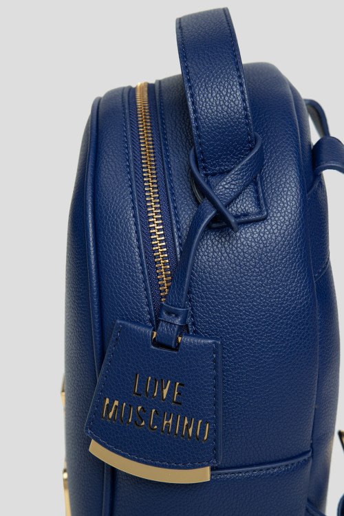 Детали: Женский темно-синий рюкзак из экокожи от Love Moschino (Лав Москино). Металлический логотип спереди, подвеска с логотипом, золотистая фурнитура, верхняя ручка, регулируемые плечевые ремни, застежка-молния, одно отделение. Размеры: 25 х 28 х 4,5 см