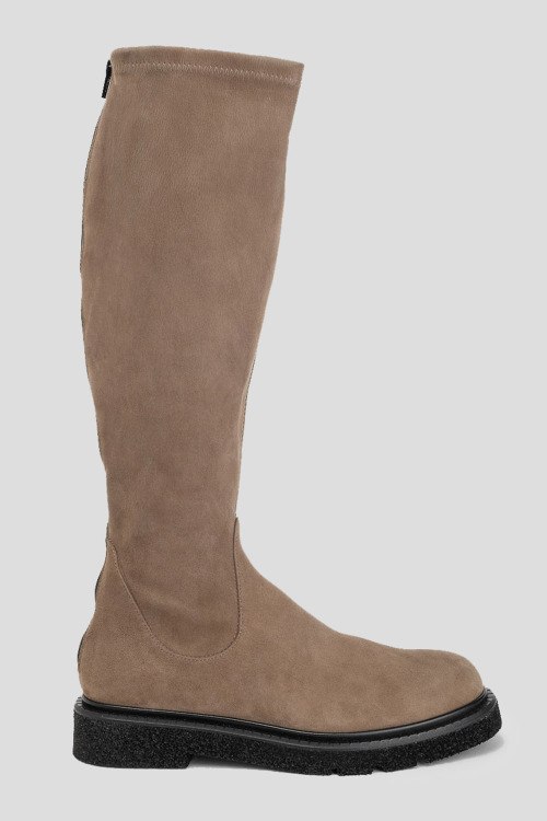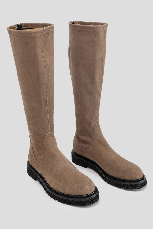 Детали: Женские бежевые замшевые сапоги от Guglielmo Rotta (Гульельмо Ротта). Модель из мягкой замши, застежка-молния сзади, закругленный носок, черная подошва