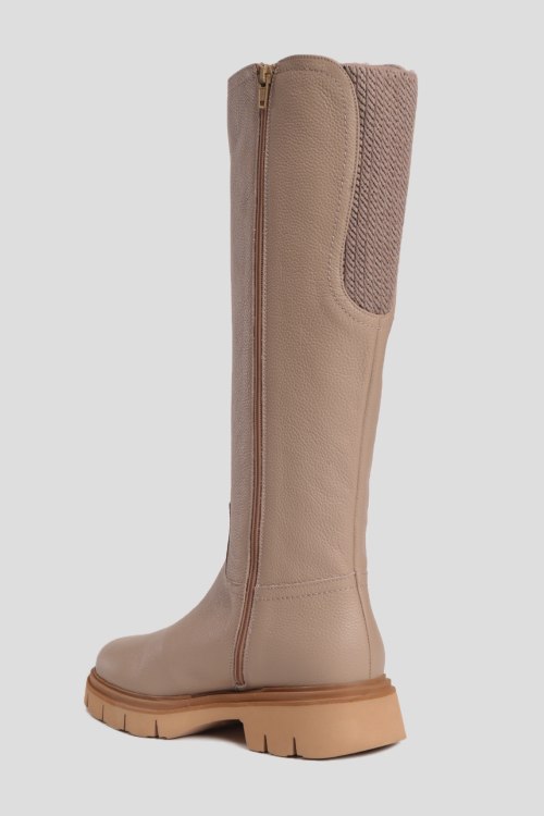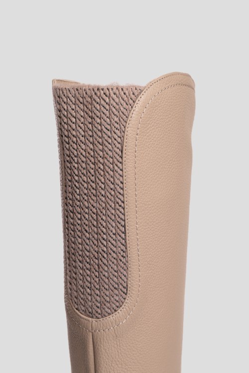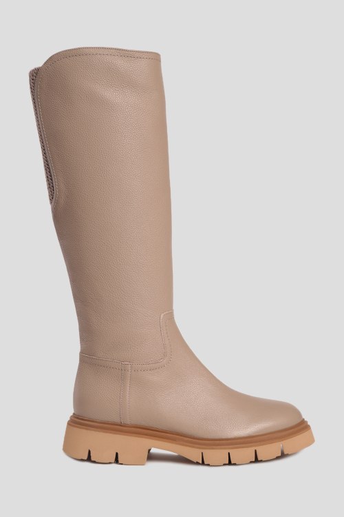 Детали: Женские бежевые кожаные сапоги от Luca Grossi (Лука Гросси). Модель из зернистой кожи, текстильная вставка, застежка-молния сбоку, закругленный носок. Высота каблука: 4.5 см, платформа: 3 см, высота голенища: 37 см, объем голенища: 36 см. Замеры указаны для: 37 размера