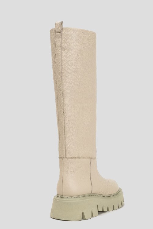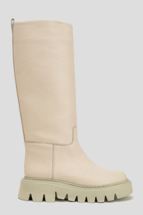 Детали: Женские светло-бежевые кожаные сапоги от Stokton (Стоктон). Модель из зернистой кожи, без застежки, закругленный носок, ребристая подошва