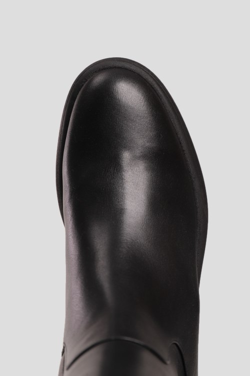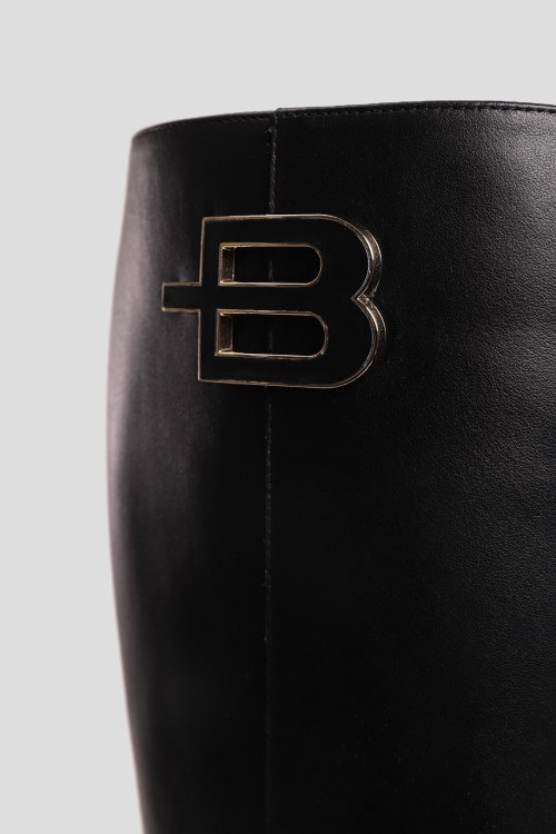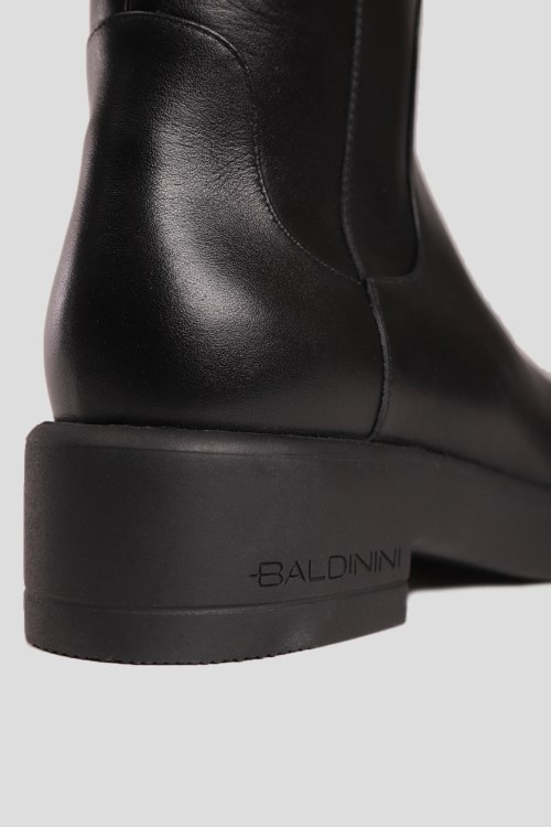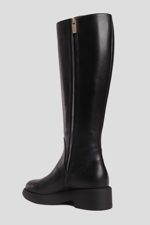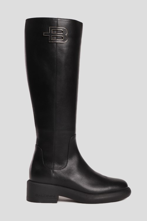 Детали: Женские черные кожаные сапоги от Baldinini (Балдинини). Модель из гладкой кожи, значок с логотипом, застежка-молния сбоку, закругленный носок, кожаная стелька. Высота каблука: 5 см, подошва: 2.5 см, высота голенища: 40 см, объем голенища: 34 см. Замеры указаны для: 37.5 размера