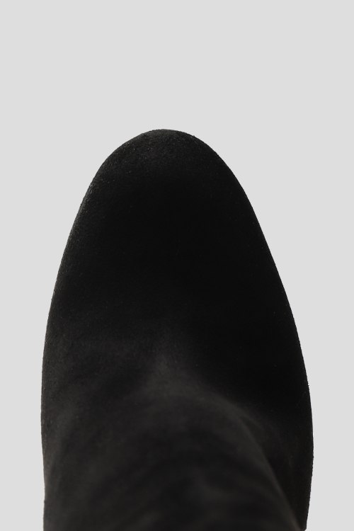 Детали: Женские черные сапоги из замши от Casadei (Касадей). Миндалевидный носок, модель на платформе, высокий каблук-шпилька, кожаная стелька, шелковая вставка на заднике, декор: шелковые ленты в виде шнуровки. Измерения: высота каблука: 14 см, высота подошвы спереди: 4 см, высота голенища: 38 см, обхват голенища: 35 см