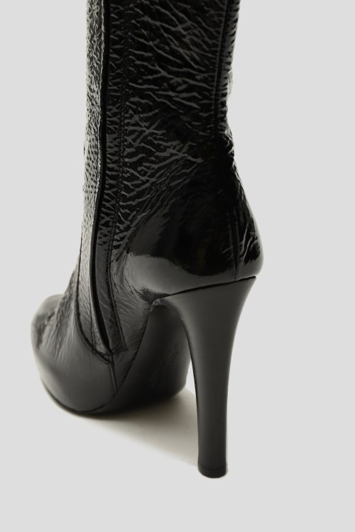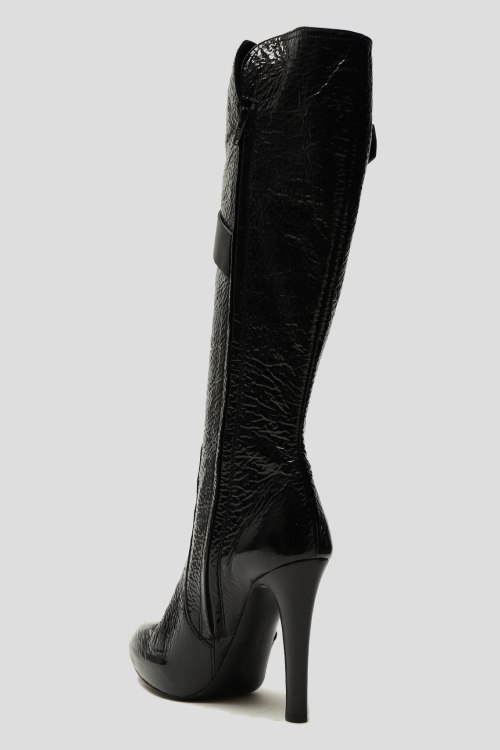 Детали: Женские черные сапоги из натуральной кожи от Givenchy (Живанши). Модель выполнена из зернистой кожи, миндалевидный носок, декорированы ремешком в тон изделия с металлической пряжкой, сбоку застежка-молния, высокий устойчивый каблук. Измерения: высота каблука: 12 см, высота скрытой платформы: 2 см, высота голенища: 36 см, полуобхват голенища: 17 см