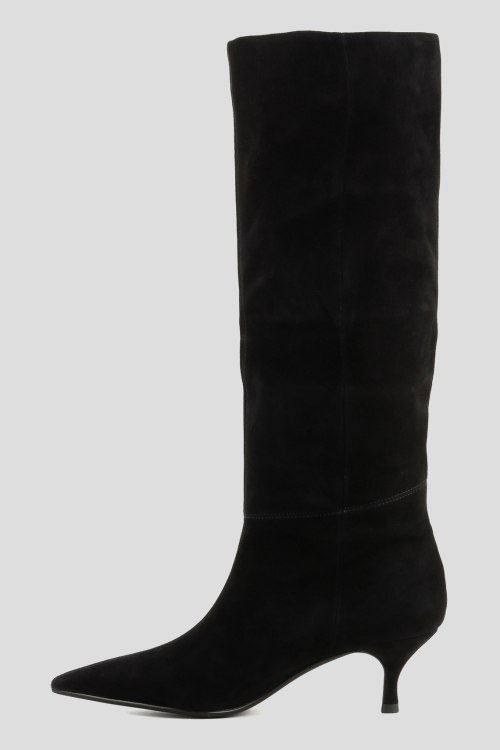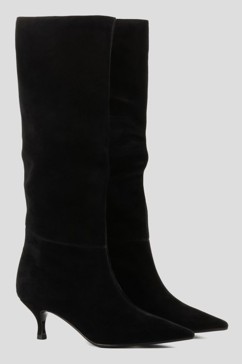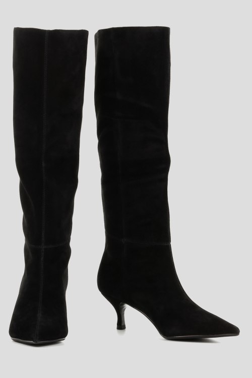 Детали: Женские черные замшевые сапоги от Le Berdes (Ле Бердес). Модель без застежки, узкий носок, каблук-шпилька, байковая стелька. Замеры: р. 35 (23 см), р. 36 (23,5 см), р. 37 (24 см), р. 38 (24,5 см), р. 39 (25 см), р. 40 (25,5 см), р. 41 (26 см)