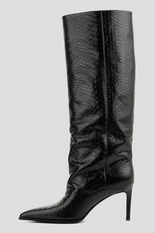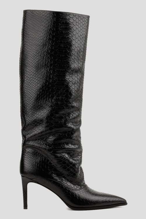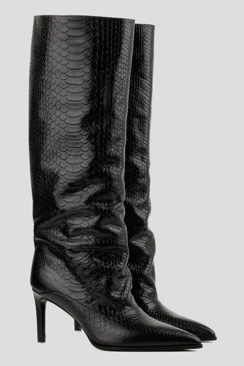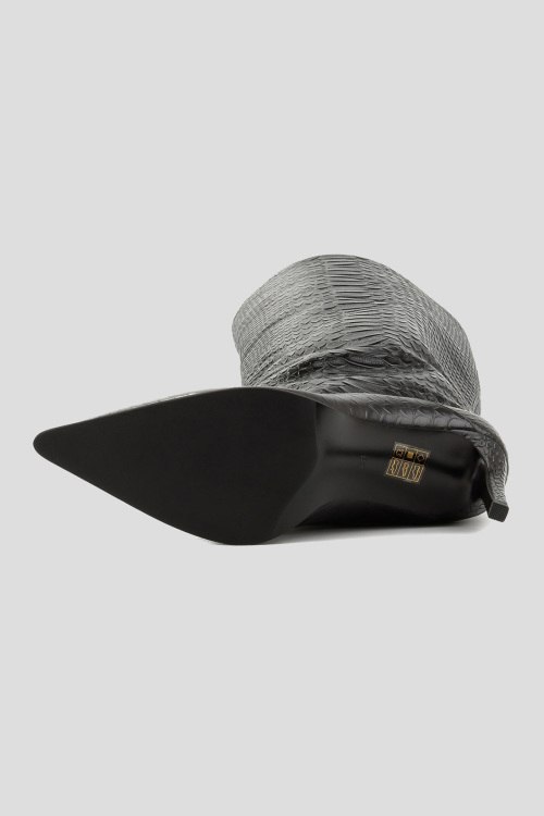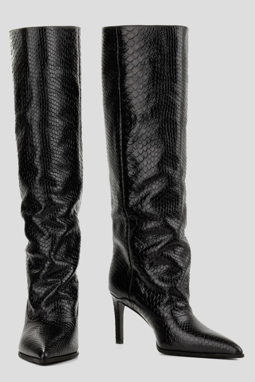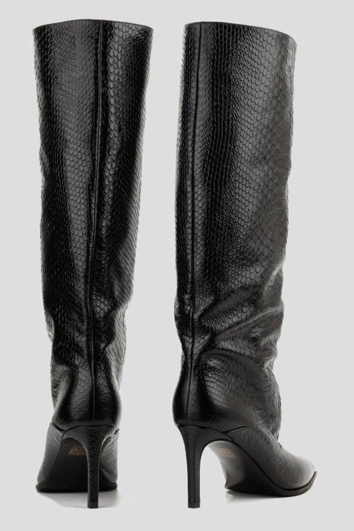 Детали: Женские черные кожаные сапоги от Le Berdes (Ле Бердес). Тиснение под кожу крокодила, без застежки, узкий носок, каблук-шпилька, кожаная стелька. Высота каблука: 8 см. Замеры: длина стельки: размер 35 (23 см), 36 (23,5 см), 37 (24 см), 38 (24,5 см), 39 (25 см),40 (25,5)
