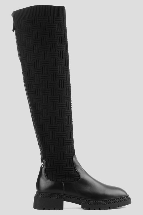 Детали: Женские черные сапоги из кожи и текстиля от Le Berdes (Ле Бердес). Комбинация материалов, чулочный дизайн, застежка-молния сбоку, квадратный носок, стелька из байки. Высота каблука: 4 см; Замеры стельки: размер 35 (23 см), размер 36 (23,5 см), 37 (24 см), 38 (24,5 см), 39 (25 см),40 (25,5)