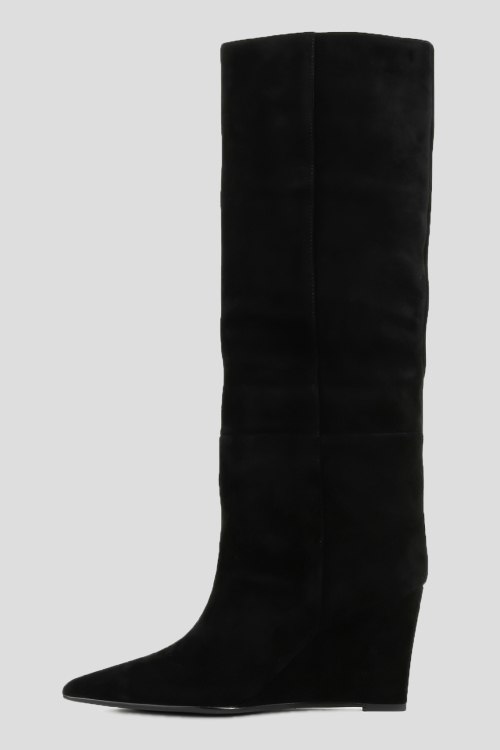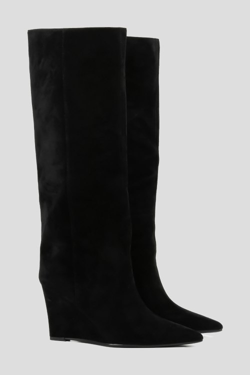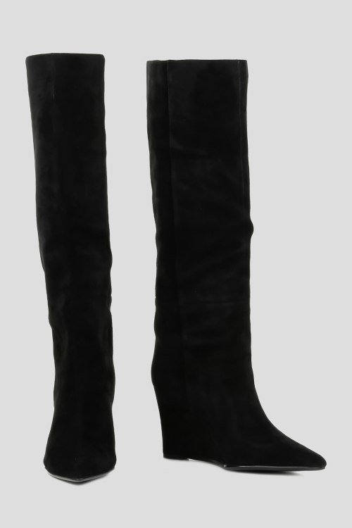 Детали: Женские черные сапоги из натуральной замши от Le Berdes (Ле Бердес). Заостренный носок, модель без застежки, модель трубы, высокая танкетка, модель утепленная байкой. Замеры: р. 35 (23 см), р. 36 (23,5 см), р. 37 (24 см), р. 38 (24,5 см), р. 39 (25 см), р. 40 (25,5 см), р. 41 (26 см)