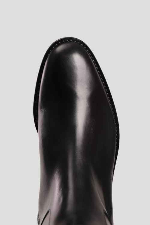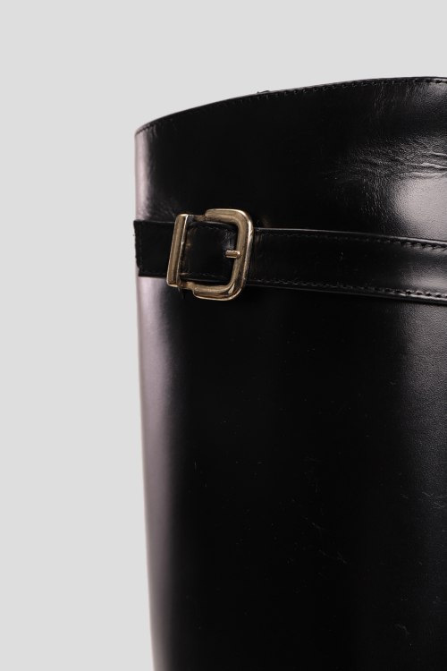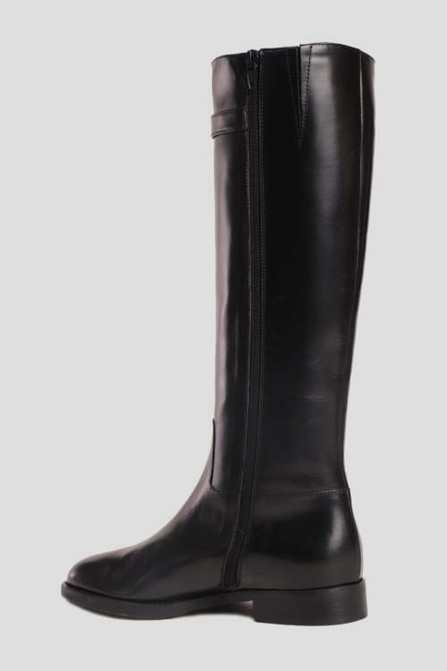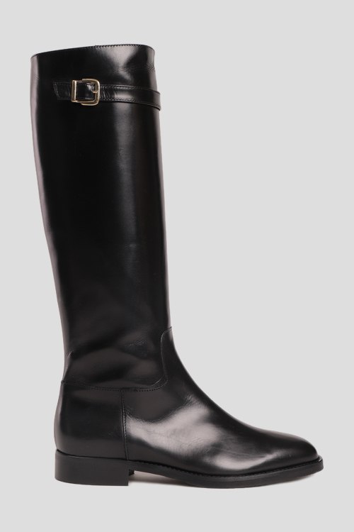 Детали: Женские черные кожаные сапоги от Luca Grossi (Лука Гросси). Модель из гладкой кожи, металлическая пряжка, застежка-молния сбоку, закругленный носок. Высота каблука: 2.5 см, подошва: 1.5 см, высота голенища: 38.5 см, объем голенища: 35 см. Замеры указаны для: 38 размера