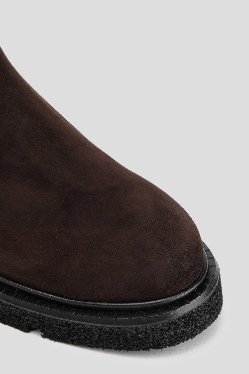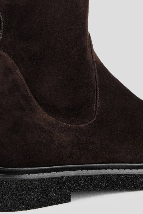 Детали: Женские темно-коричневые замшевые сапоги от Guglielmo Rotta (Гульельмо Ротта). Модель из мягкой замши, застежка-молния сзади, закругленный носок, черная подошва