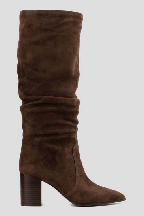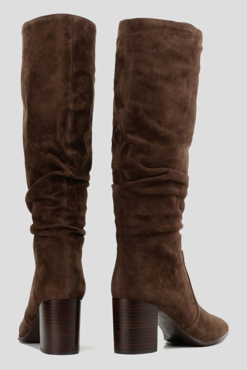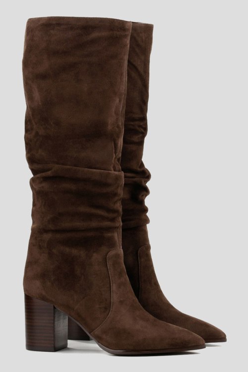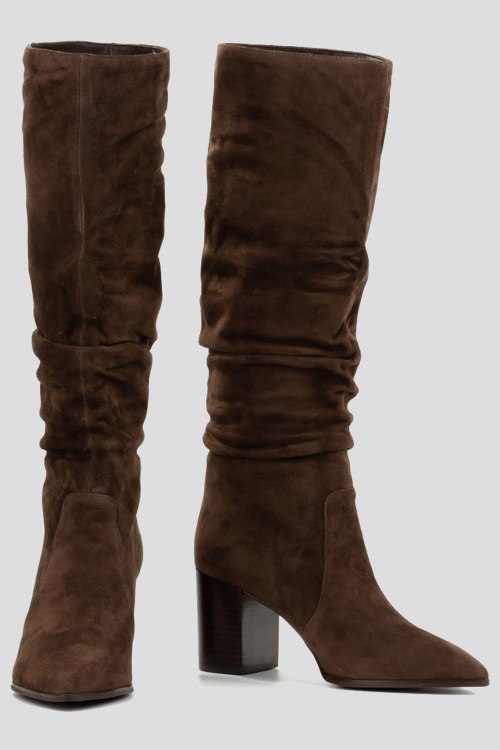 Детали: Женские темно-коричневые замшевые сапоги от Le Berdes (Ле Бердес). Модель без застежки, узкий носок, широкий каблук, кожаная стелька. Высота каблука: 8 см. Замеры: длина стельки: размер 35 (23 см), 36 (23,5 см), 37 (24 см), 38 (24,5 см), 39 (25 см),40 (25,5)