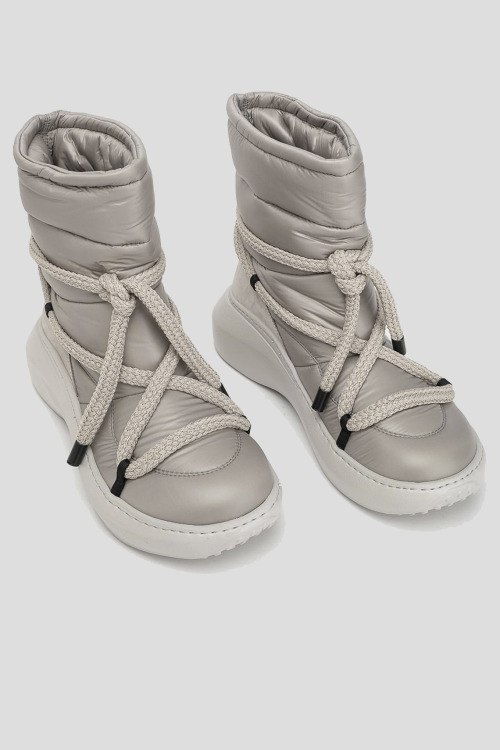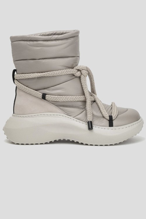 Женские бежевые ботинки из текстидя и нубука от Vic Matie (Вик Матие). Стеганый дизайн, закругленный носок, шнуровка спереди, массивная резиновая подошва,высота по щиколотку, нашивка с логотипом бренда