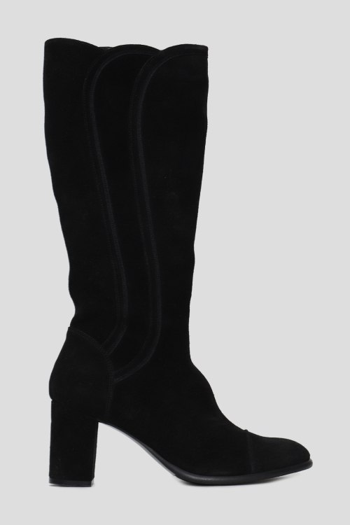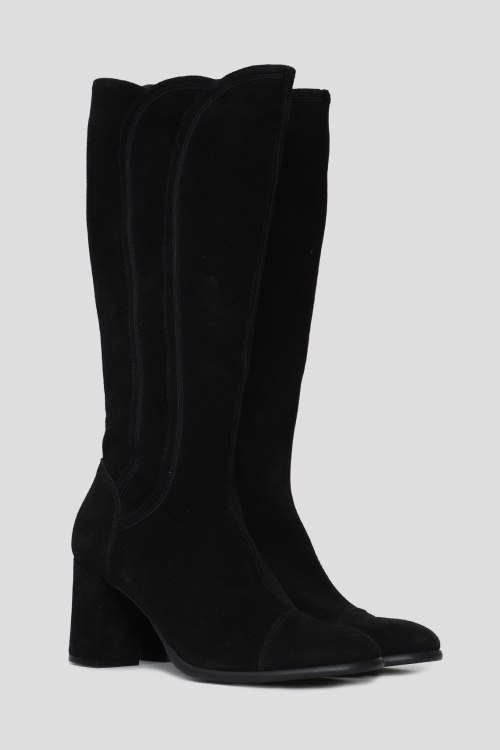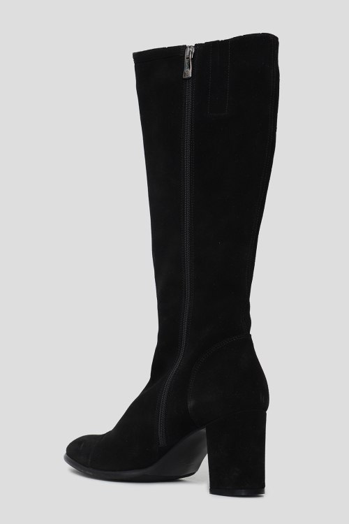 Детали: Женские черные замшевые сапоги от Kelton (Келтон). Закругленный носок, сбоку застежка на молнию, высокий устойчивый каблук, сбоку декор прострочки, внутри утепленные мехом