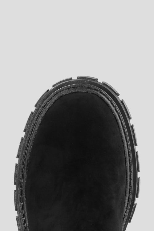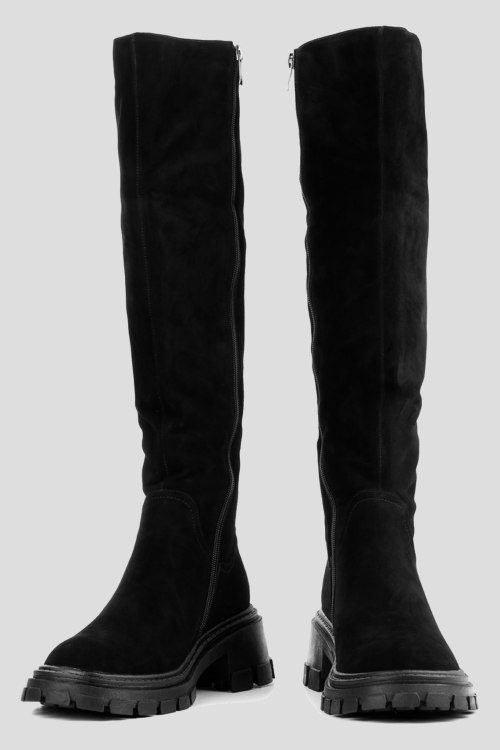 Детали: Женские черные замшевые сапоги от Le Berdes (Ле Бердес). Закругленный носок, сбоку застежка на молнию, тракторная подошва, утепленная модель евромехом. Измерения: длина стелька: 23.5 см(36)