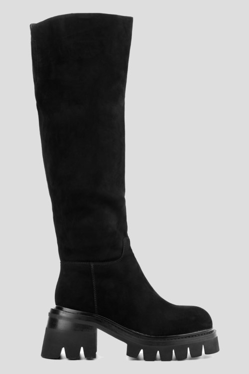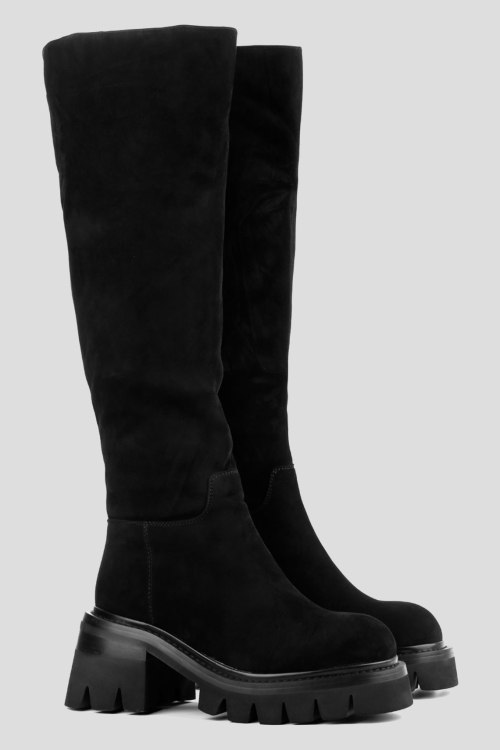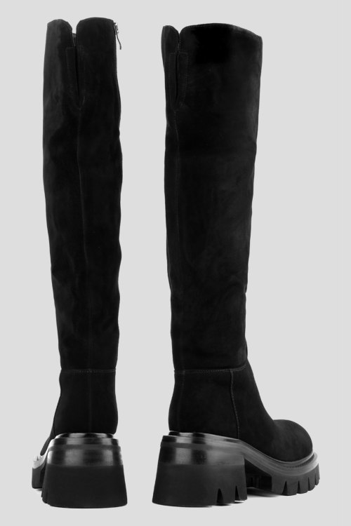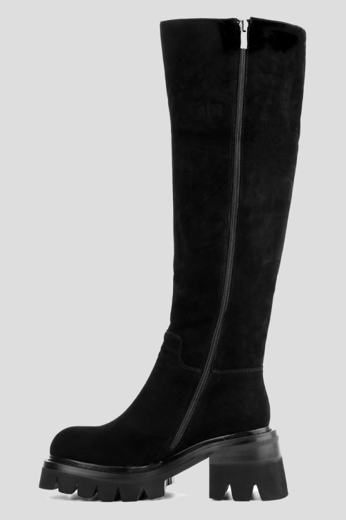 Детали: Женские черные замшевые сапоги от Le Berdes (Ле Бердес). Закругленный носок, сбоку застежка на молнию, тракторная подошва, утепленная модель евромехом. Измерения: высота каблука 7 см , длина стелька: 23.5 см(36)