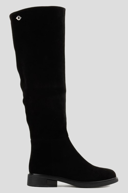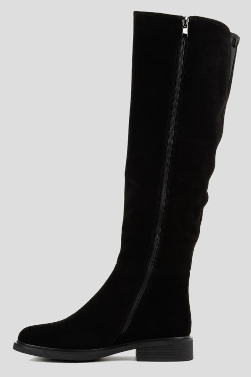 Детали: Женские черные замшевые ботфорты на меху от Le Berdes (Ле Бердес). Застежка-молния сбоку, закругленный носок, внутри на меху. Замеры: длина стельки: размер 35 (23 см), 36 (23,5 см), 37 (24 см), 38 (24,5 см), 39 (25 см),40 (25,5)