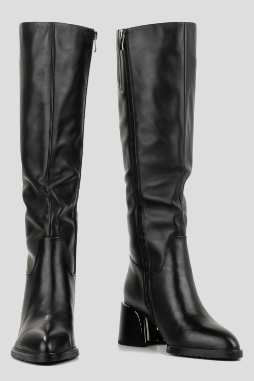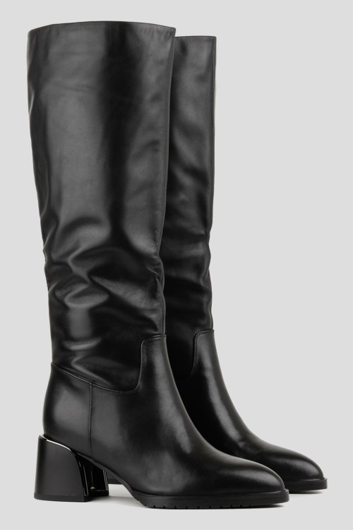 Детали: Женские черные кожаные сапоги на меху от Le Berdes (Ле Бердес). Модель из гладкой кожи, застежка-молния сбоку, зауженный носок, широкий каблук, внутри на меху. Высота каблука: 7 см. Замеры: длина стельки: размер 35 (23 см), 36 (23,5 см), 37 (24 см), 38 (24,5 см), 39 (25 см),40 (25,5)