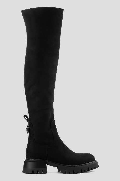Детали: Женские черные замшевые ботфорты на меху от Le Berdes (Ле Бердес). Чулочный дизайн, застежка-молния сбоку, закругленный носок, тракторная подошва. Высота каблука: 5 см; Замеры стельки: размер 35 (23 см), размер 36 (23,5 см), 37 (24 см), 38 (24,5 см), 39 (25 см),40 (25,5)