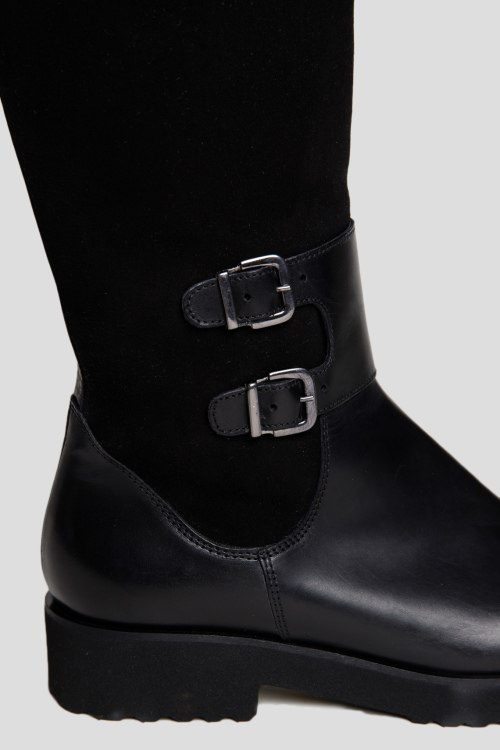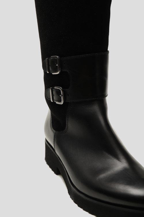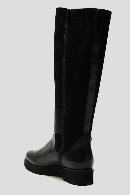 Детали: Женские черные сапоги на меху из натуральной кожи от Luca Grossi (Лука Гросси). Дизайн в виде комбинации материалов, декорированы несъемным ремешком с пряжкой, сбоку застежка-молния, внутри на меху, широкий блочный каблук. Измерения: высота каблука: 3,5 см, высота голенища: 38,5 см, полуобхват голенища: 18 см