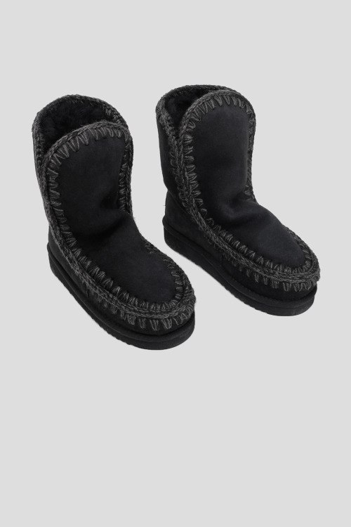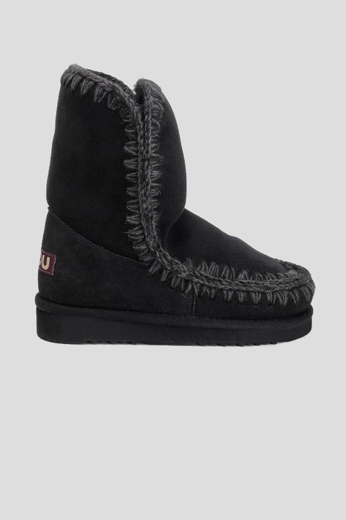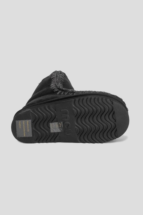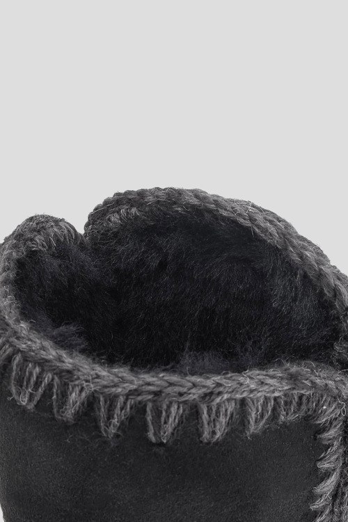 Детали: Женские черные сапоги из натуральной замша от Mou (Моу). Закругленный носок, уплотненный задник, контрастная прошивка, патч-лого, профилированная подошва, модель утепленная мехом