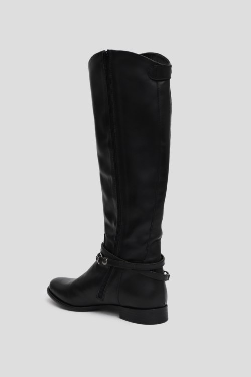 Детали: Женские черные из натуральной кожи от NOW (Нау). Закругленный носок, широкий каблук, застегиваются на молнию сбоку, Декорированы съемным ремешком с металлической фурнитурой, утепленные натуральным мехом. Высота голенища: 42 см, полуобхват голенища: 18,5 см, высота каблука: 2,5 см (на размер: 39)