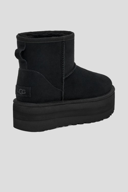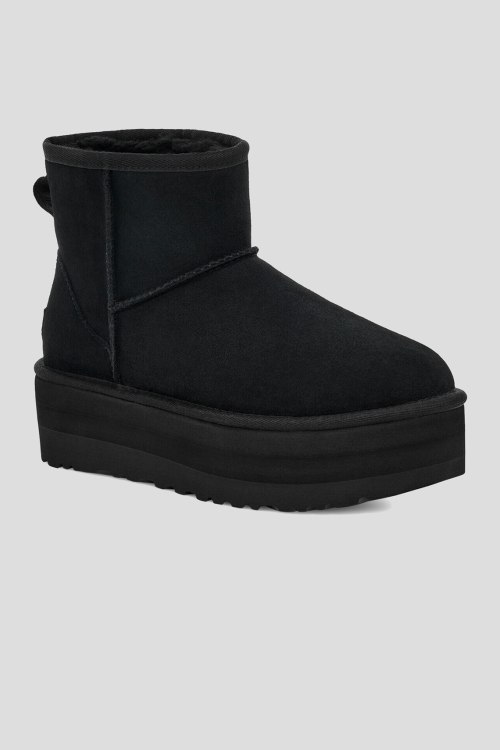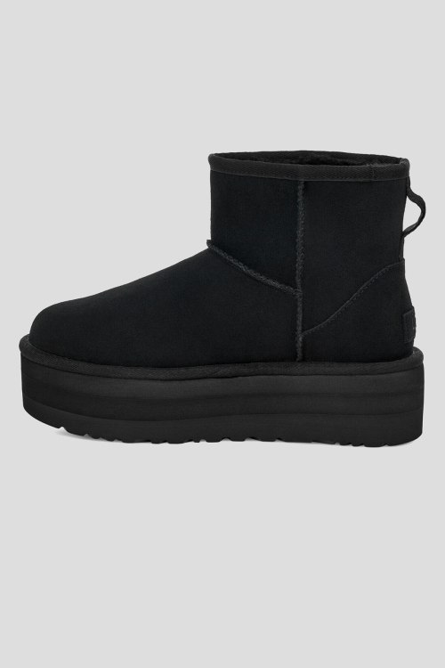Детали: Женские черные угги из натуральной кожи от UGG Australia (Угг Австралия). Закругленный носок, толстая подошва, шерстяная подкладка, петля для подтягивания, патч-лого. Высота платформы: 5 см