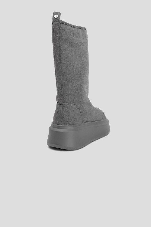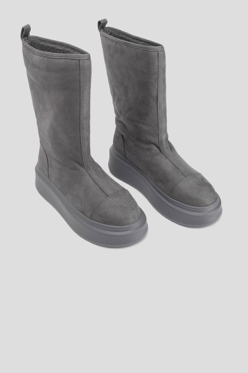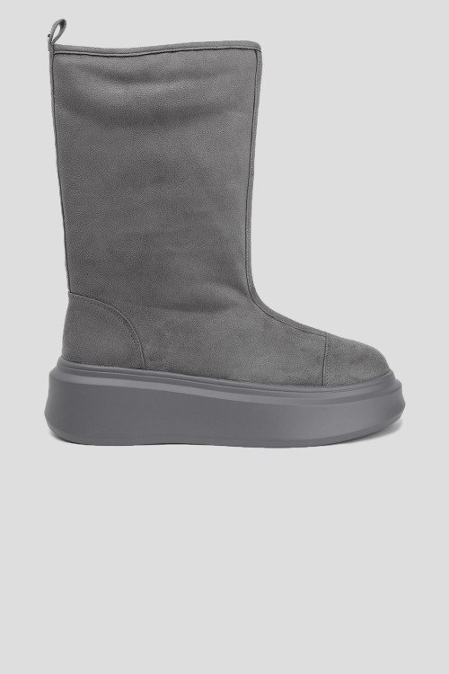 Детали: Женские серые сапоги из экокожи от TWINSET (Твинсет). Закругленный носок, без застежки, петля для подтягивания, утепленная модель, толстая подошва в тон изделия