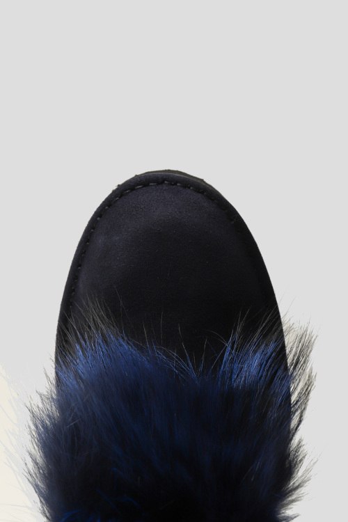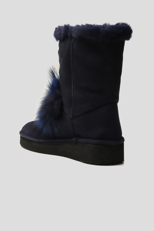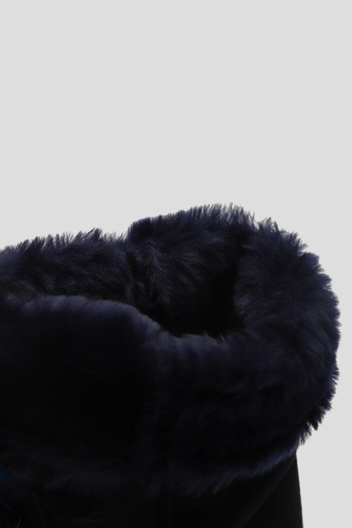 Женские темно-синие угги из натуральной замши от Loriblu (Лориблу). Закругленный носок, модель без застежки, плоская подошва, декорированы меховой опушкой, утеплены натуральным мехом. Измерения: высота голенища: 20 см