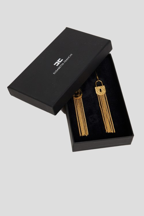 Женские золотистые серьги от Elisabetta Franchi (Елизабетта Франчи). Дизайн в виде замочков с металлической бахромой.
