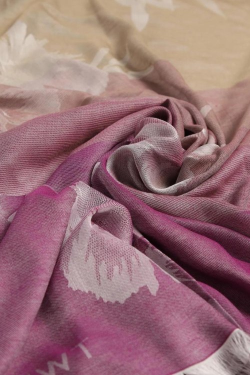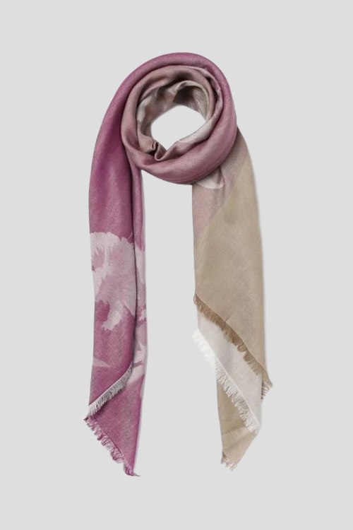Детали: Женская фиолетово-бежевая шаль из модала и вискозы от TWINSET (Твинсет). Комбинация цветов, цветочный узор, края с бахарамой