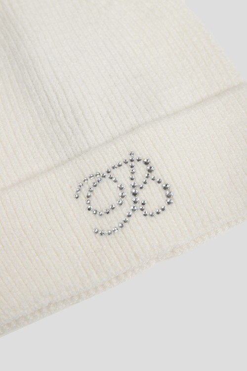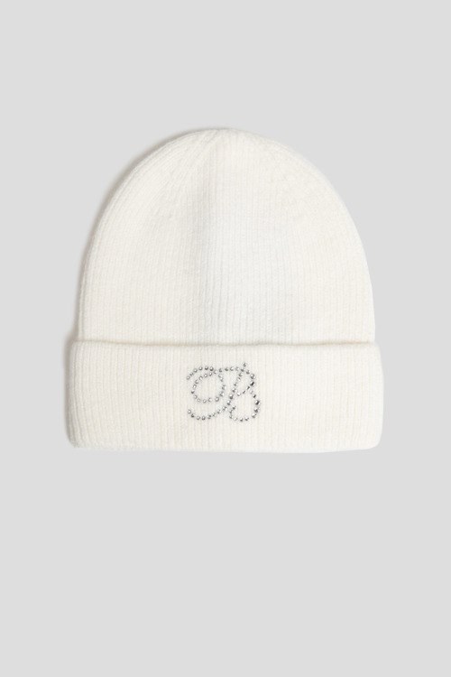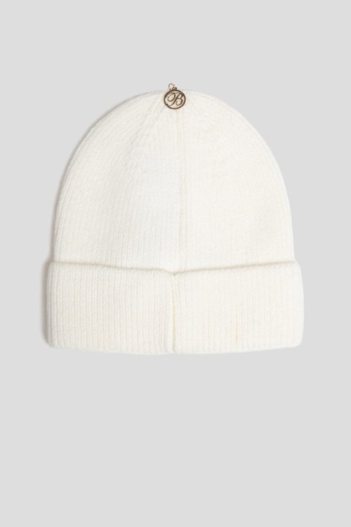 Детали: Женская белая шапка бини из вискозы от Blanca Luz (Бланка Луз). Классическая вязка, широкий отворот, логотип из страз