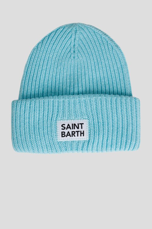 Детали: Женская бирюзовая шапка бини из шерсти и вискозы от Mc2 Saint Barth (Mc2 Сент Барт). Классическая вязка, нашивка с логотипом, широкий отворот
