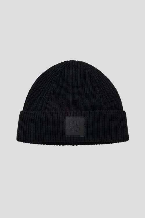 Детали: Женская черная шерстяная шапка бини Sential от Hugo by Hugo Boss (Хуго бай Хуго Босс). Классическая вязка, нашивка с логотипом, широкий отворот
