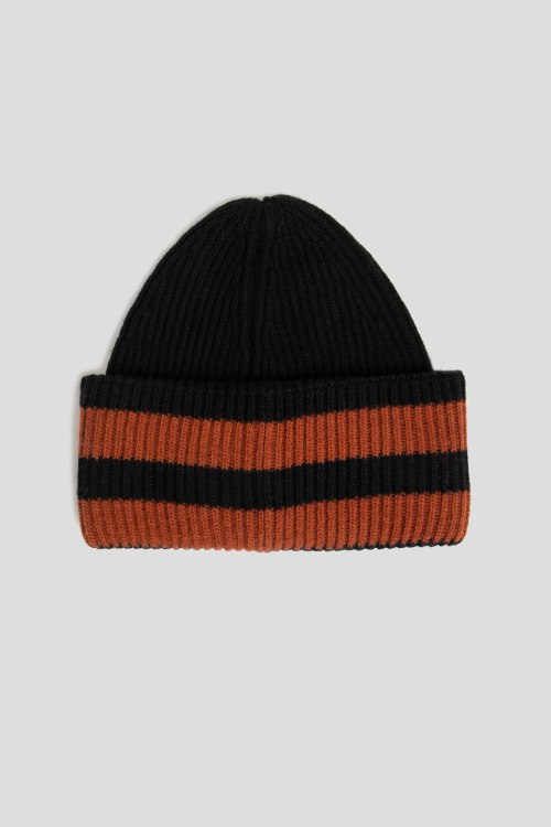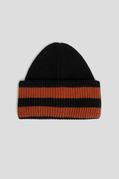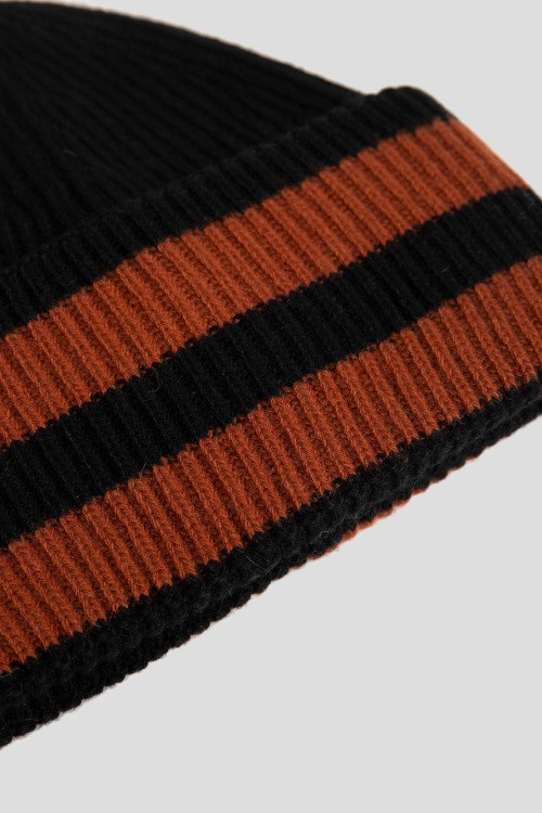 Детали: Женская черная шапка бини из вискозы и шерсти от Vicolo (Виколо). Модель с примесью кашемира и ангоры, классическая вязка, широкий отворот с коричневые вставками